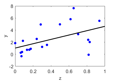 \[ \min_{c,s}\ \sum_{i=1}^m (y_i - \bar{y}_i)^2 \quad\text{st}\quad \bar y_i = c + s z_i \]