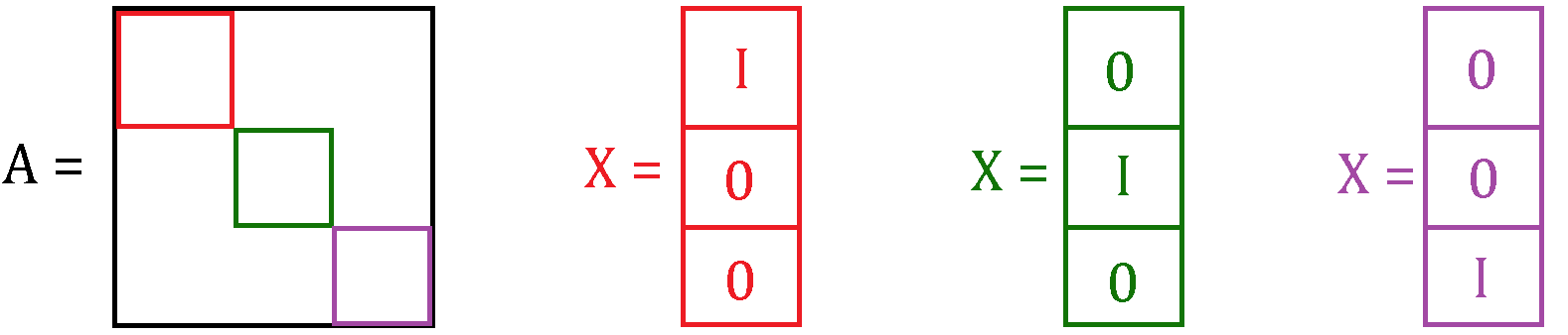 if \(A\succ 0\), then \[ A = \begin{bmatrix} a_{11} & w^T \\ w & K \end{bmatrix} = \underbrace{\begin{bmatrix} \alpha & \\ w/\alpha & I \end{bmatrix}}_{R_1^T} \underbrace{\begin{bmatrix} 1 & \\ & K - ww^T/\alpha^2 \end{bmatrix}}_{A_1} \underbrace{\begin{bmatrix} \alpha & w^T/\alpha \\ & I \end{bmatrix}}_{R_1} \quad \alpha := \sqrt{a_{11}} \]